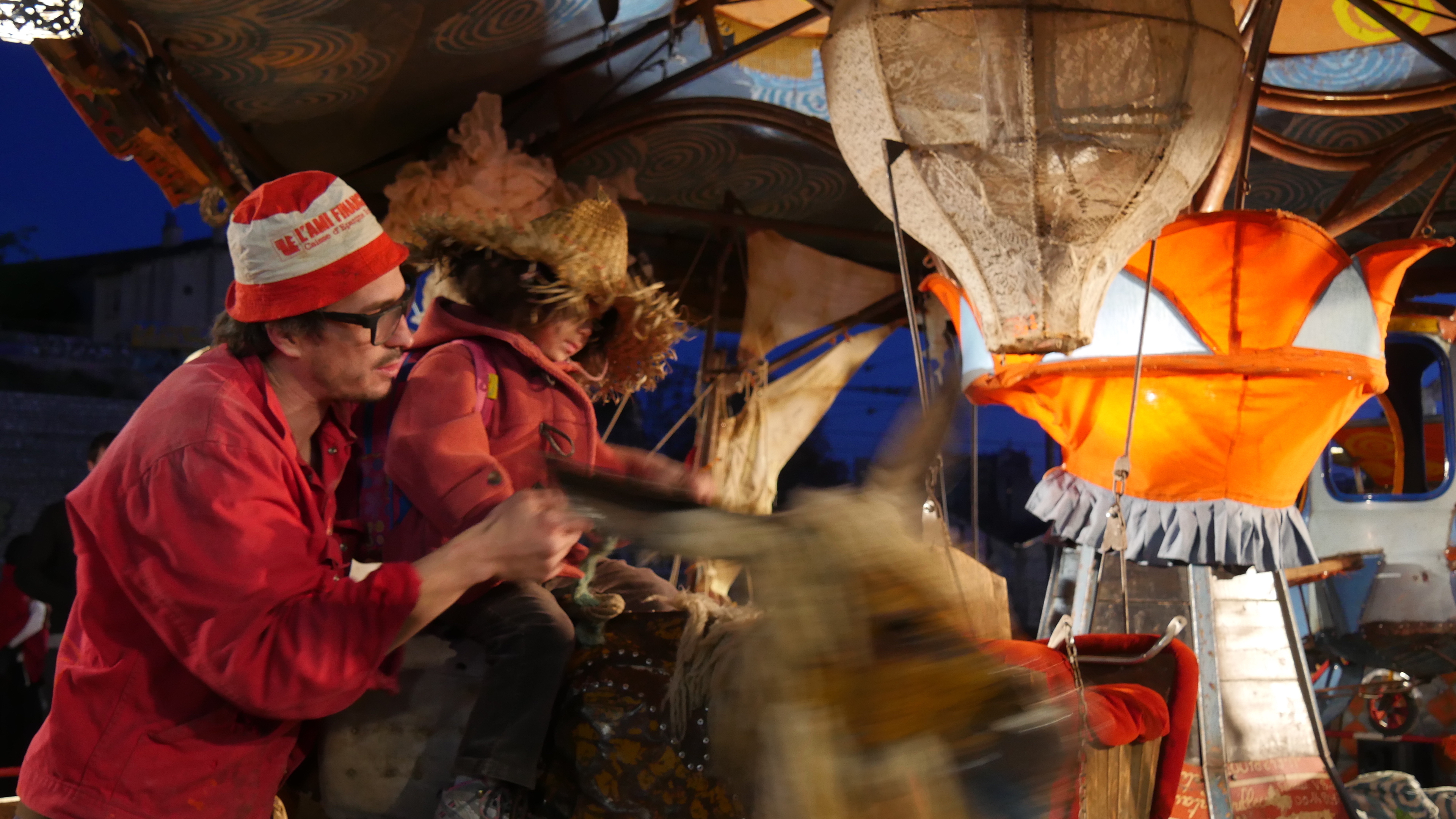 Le manège pour enfants est tenu par une bande de gais lurons tout de rouge vêtus. Quand l’un d’eux agite le pompon devant les enfants, un autre dit très sérieusement dans le micro : « Allez les gamins, il y a des cartouches de clopes à gagner ! » Ambiance.