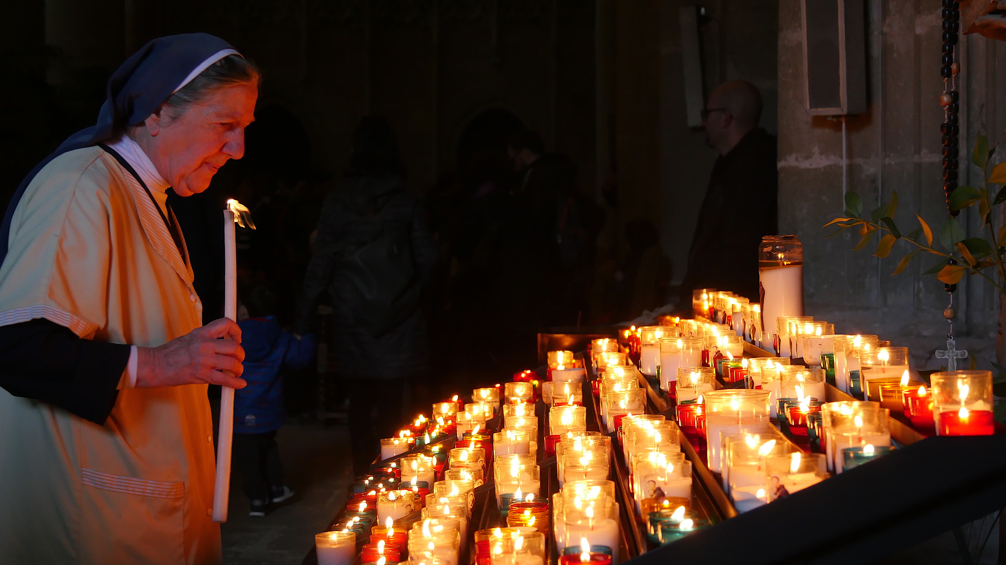 Certes, on est un peu loin de Marseille, mais le titre du blog précise : « Massilia et encore ». On est dans le « et encore » et plus précisément dans l’église Saint-Nazaire, au cœur de la cité de Carcassonne. Même si ce n’est pas flagrant sur la photo, c’était la foule ce dernier vendredi de mars. En témoigne le nombre de bougies. Et cette bonne sœur veillant sur les flammes.