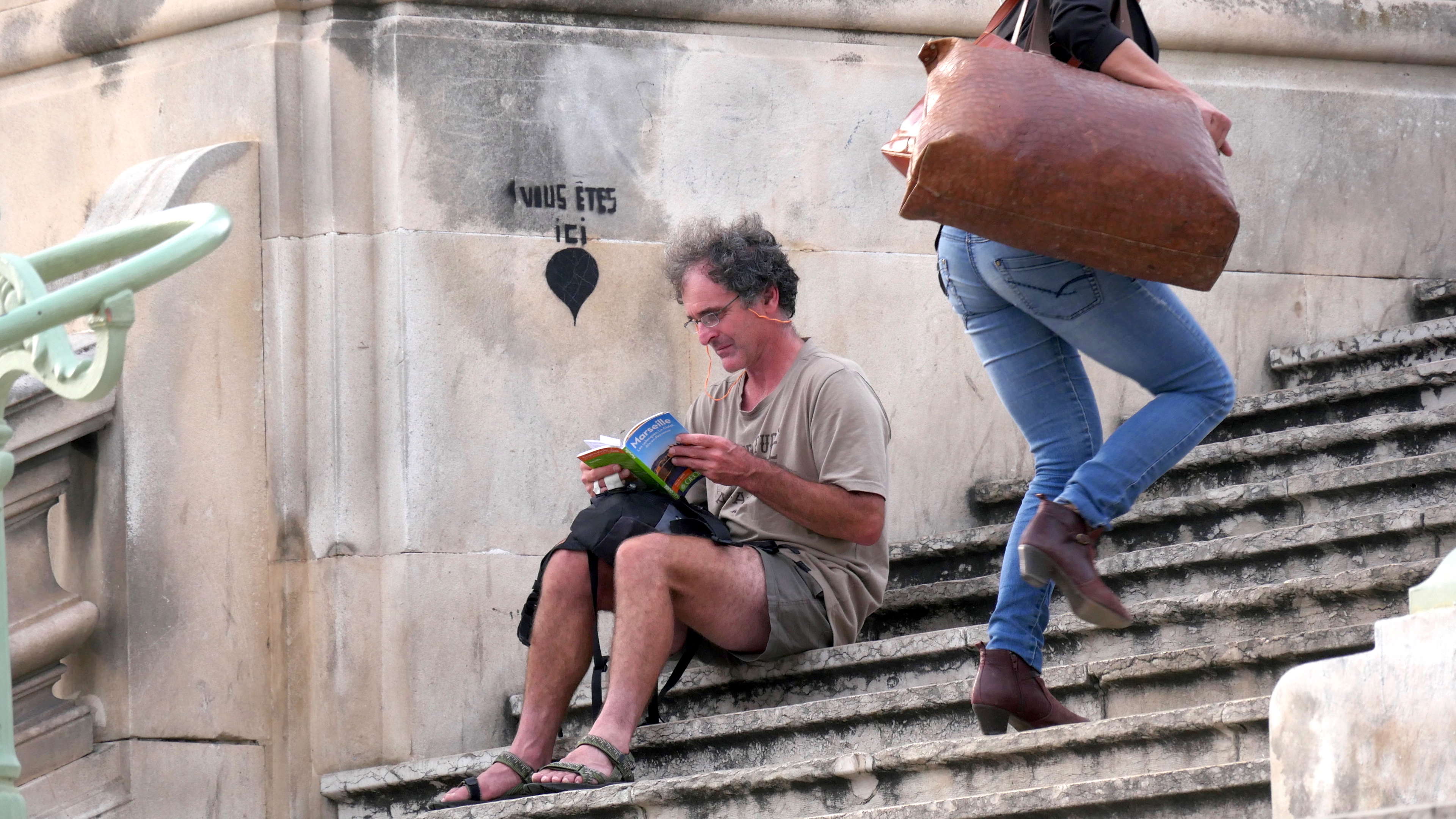 En montant les escaliers de la gare Saint-Charles.
