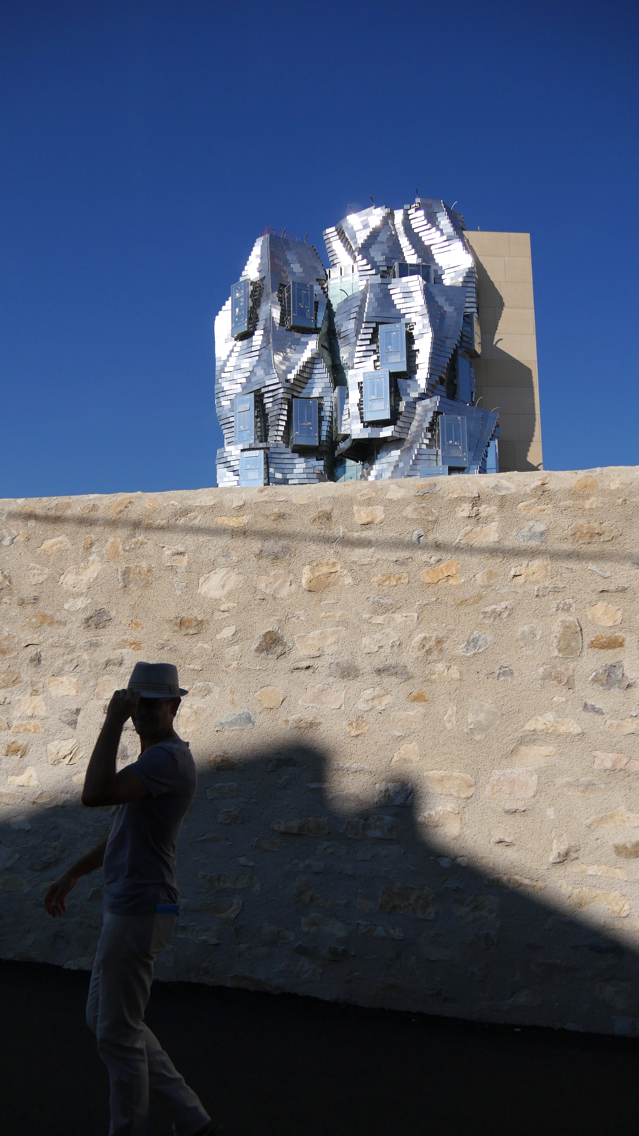 A l’occasion des 49e Rencontres de la Photographie en Arles, visite dominicale sous une grosse chaleur.  Je fais des kilomètres à pied d’une exposition à l’autre avant de découvrir cette impressionnante tour-sculpture. Une œuvre de l’architecte Frank  Gehry, un adepte de l’inox manifestement.