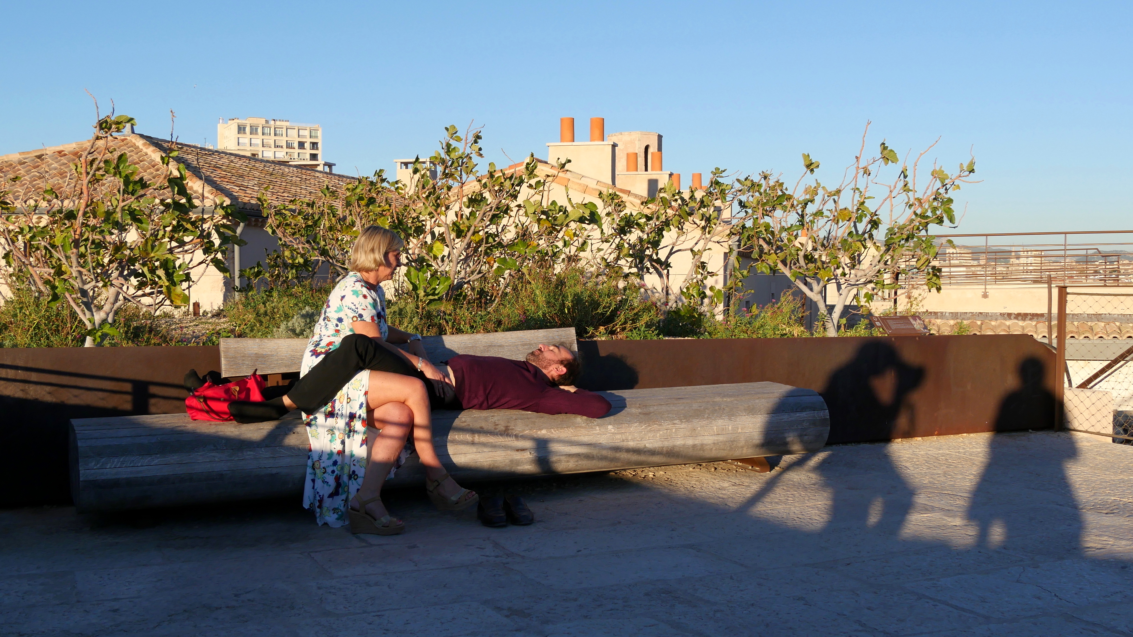Par une douce fin de journée, nous arrivons avec mes camarades photographes du mercredi (on en devine au moins deux !) sur cette plateforme du Fort Saint-Jean. Nous tournons, marchons, mitraillons en tout sens devant ce couple amoureux. L’amour est aveugle : pas une seconde, ils ne s’intéressent à nous ou jettent un regard dans notre direction.