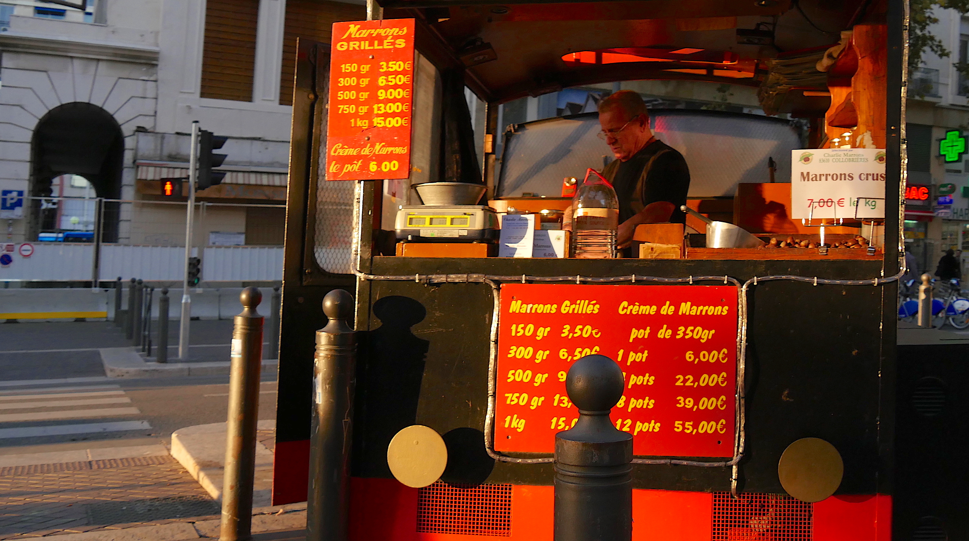 Canebière En automne et en hiver, le soleil couchant est pile dans l’axe de la Canebière. Un bon moyen pour photographier le marchand de marrons en attente de clients dans sa bicoque. Partager : Partager sur Facebook(ouvre dans une nouvelle fenêtre) Facebook Partager sur X(ouvre dans une nouvelle fenêtre) X Partager sur WhatsApp(ouvre dans une nouvelle fenêtre) WhatsApp Partager sur LinkedIn(ouvre dans une nouvelle fenêtre) LinkedIn Partager sur Telegram(ouvre dans une nouvelle fenêtre) Telegram Envoyer un lien par e-mail à un ami(ouvre dans une nouvelle fenêtre) E-mail Plus Imprimer(ouvre dans une nouvelle fenêtre) Imprimer J’aime chargement… Articles similaires 6 décembre 20186 décembre 2018 by alaingirard Categories: villeTags: couleurs, hommes, travail Laisser un commentaire