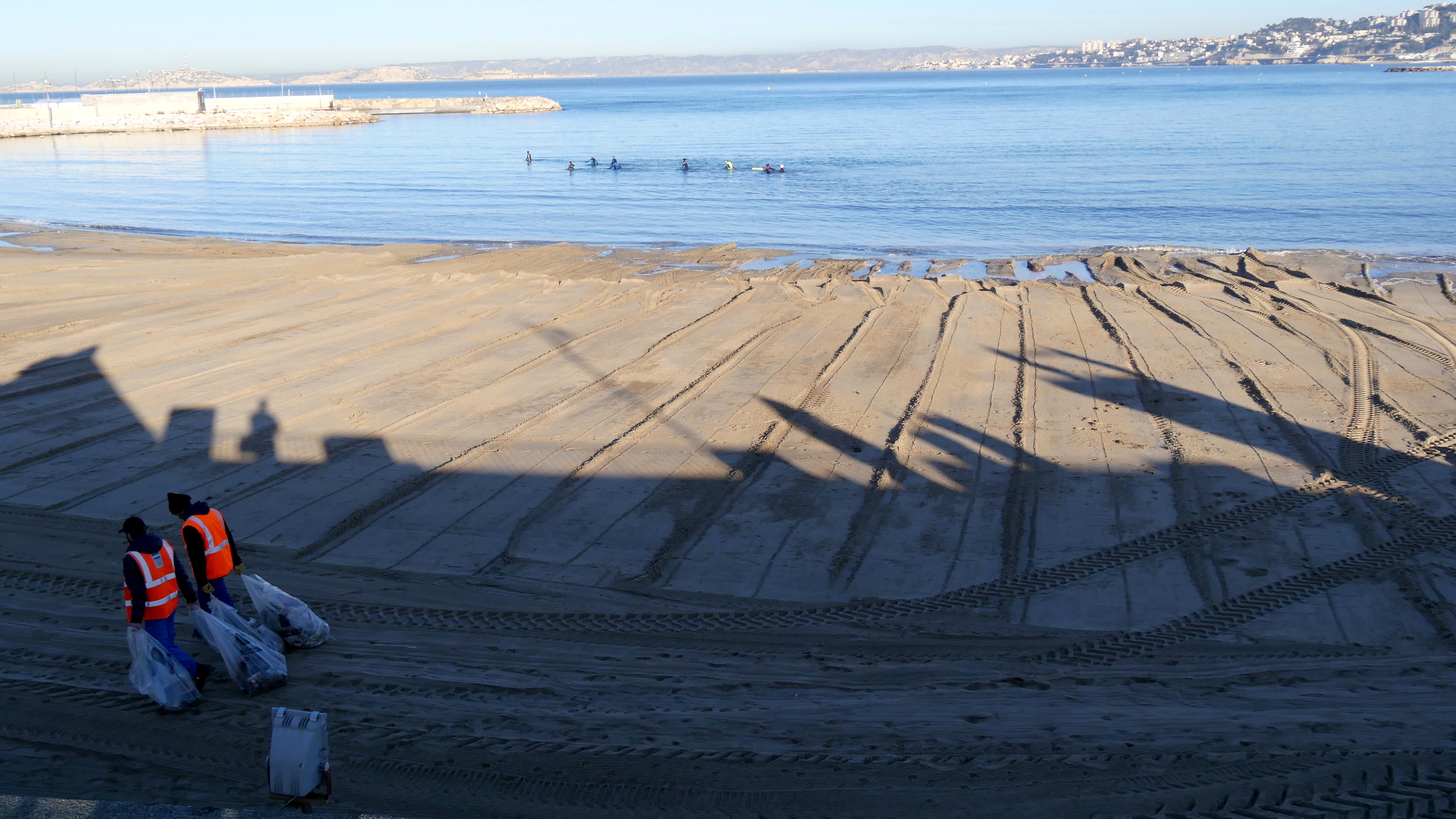 Ce mercredi matin de février, j’arrive tôt dans l’idée de faire des images de la plage dans le bas soleil hivernal. Peu de monde dans la France qui se lève tôt sinon les longe-côte toujours motivés et les employés municipaux qui ne le sont pas moins.