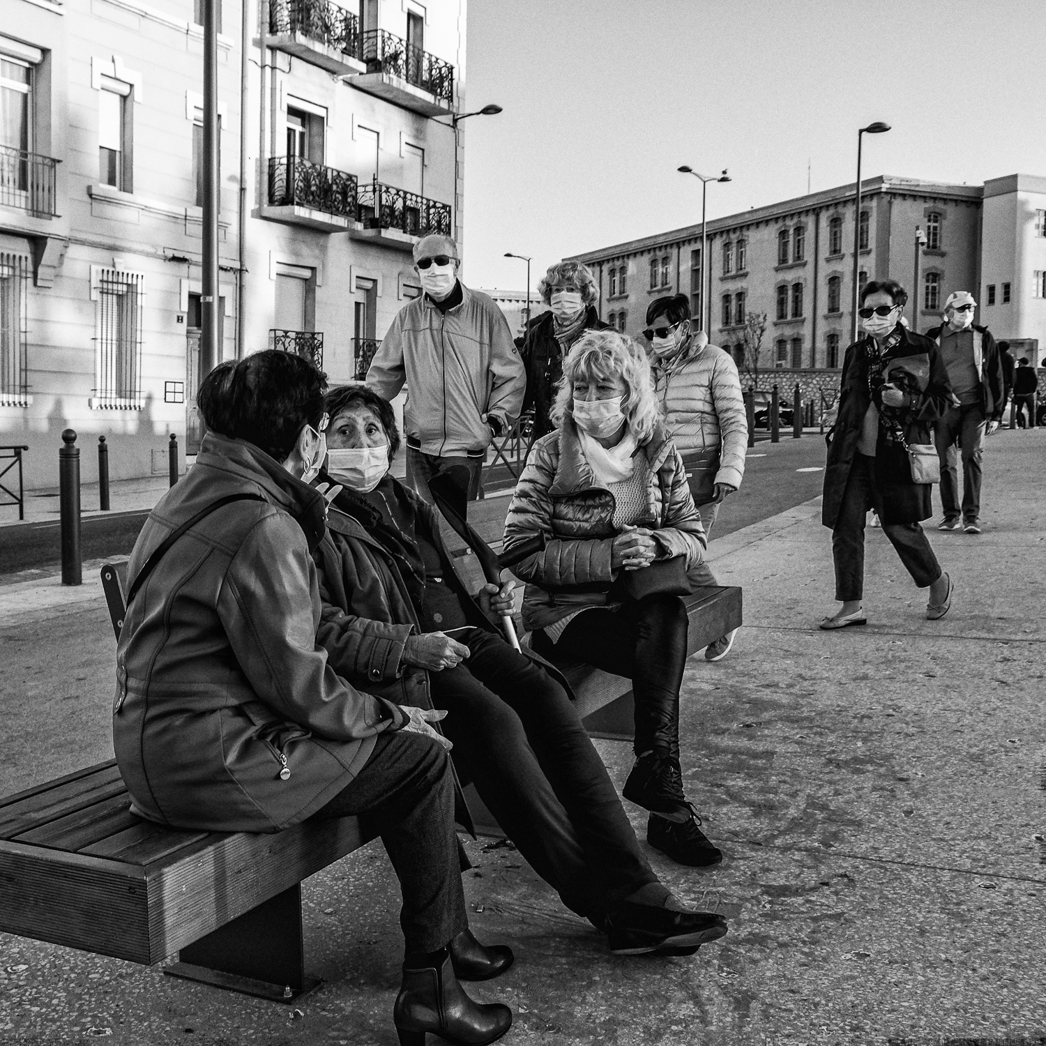 Face à la plage, plutôt fréquentée pour un 14 novembre, les gens échangent, discutent, se promènent. Sur les huit personnes bien visibles, huit portent un masque ! « Là où c’est intéressant, cette connerie de pandémie, c’est que pour la première fois on est tous en train de vivre la même chose en même temps. Chacun se souviendra de 2020 pour la même chose, aussi bien un Russe qu’un mec de Los Angeles. Peut-être qu’à force d’être tous modelés par des événements très forts, on va finir par développer une autre conscience de groupe, une vraie conscience mondiale », espère Virginie Despentes dans une interview de l’Obs du 5 novembre 2020. Optimiste Virginie…