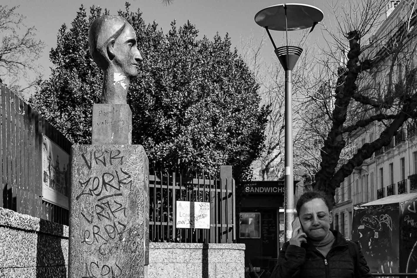 Boulevard du Jardin Zoologique Je passe régulièrement devant le buste d’Antonin Artaud (1896 Marseille-1948 Ivry-sur-Seine, est-il gravé sur le piédestal) qui veille à l’entrée du Parc Longchamp. Les tags s’additionnent jour après jour. Il reste de marbre. Partager : Partager sur Facebook(ouvre dans une nouvelle fenêtre) Facebook Partager sur X(ouvre dans une nouvelle fenêtre) X Partager sur WhatsApp(ouvre dans une nouvelle fenêtre) WhatsApp Partager sur LinkedIn(ouvre dans une nouvelle fenêtre) LinkedIn Partager sur Telegram(ouvre dans une nouvelle fenêtre) Telegram Envoyer un lien par e-mail à un ami(ouvre dans une nouvelle fenêtre) E-mail Plus Imprimer(ouvre dans une nouvelle fenêtre) Imprimer J’aime chargement… Articles similaires 10 décembre 20209 décembre 2020 by alaingirard Categories: ville Laisser un commentaire