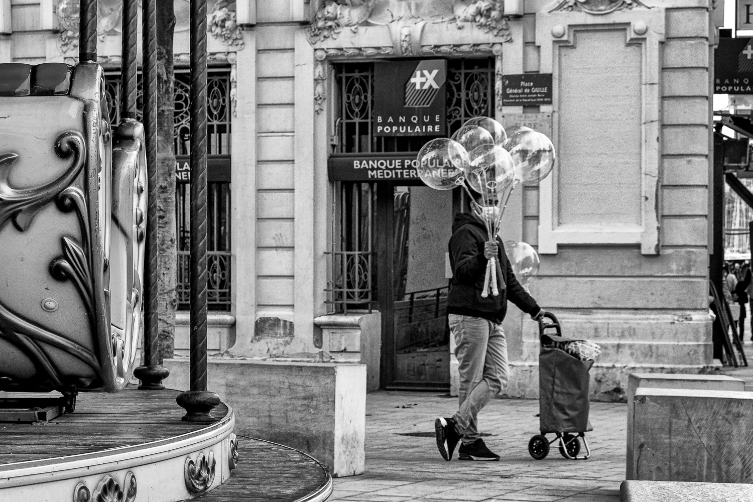 Place Général de Gaulle Souvent je le vois sur le Vieux Port. Aujourd’hui, masqué, il est près du manège plutôt désert à cette heure. Les passants sont pressés. Je contourne le manège puis je reviens vers lui, le nez au vent, pour le saisir dans cette posture. Partager : Partager sur Facebook(ouvre dans une nouvelle fenêtre) Facebook Partager sur X(ouvre dans une nouvelle fenêtre) X Partager sur WhatsApp(ouvre dans une nouvelle fenêtre) WhatsApp Partager sur LinkedIn(ouvre dans une nouvelle fenêtre) LinkedIn Partager sur Telegram(ouvre dans une nouvelle fenêtre) Telegram Envoyer un lien par e-mail à un ami(ouvre dans une nouvelle fenêtre) E-mail Plus Imprimer(ouvre dans une nouvelle fenêtre) Imprimer J’aime chargement… Articles similaires 1 mars 202128 février 2021 by alaingirard Categories: Massilia, villeTags: ballon, enfant, hiver, hommes, immeubles, masque, noir et blanc, travail Laisser un commentaire