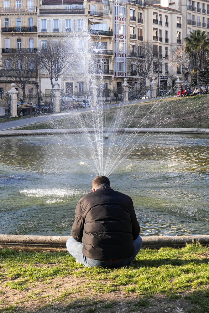 En descendant dans le parc.