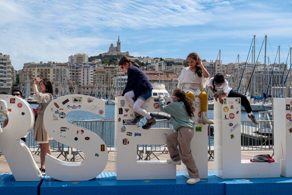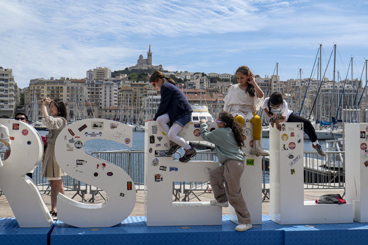 Promenade dominicale sur le Vieux Port pour découvrir les aménagements pour l’arrivée de la flamme olympique mercredi 8 mai prochain. La passerelle créée sur l’eau dans le prolongement de la Canebière pour accueillir le Belem, est lointaine : des barrières sont disposées à distance des bords du quai.