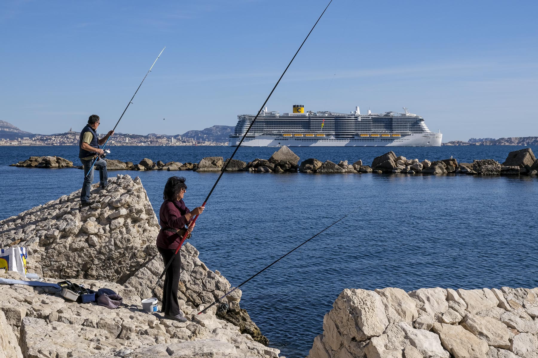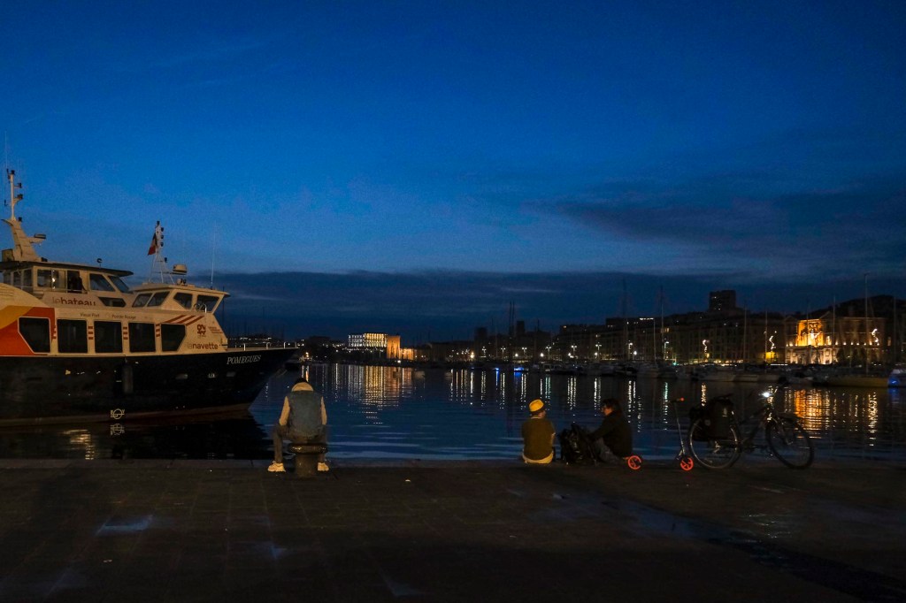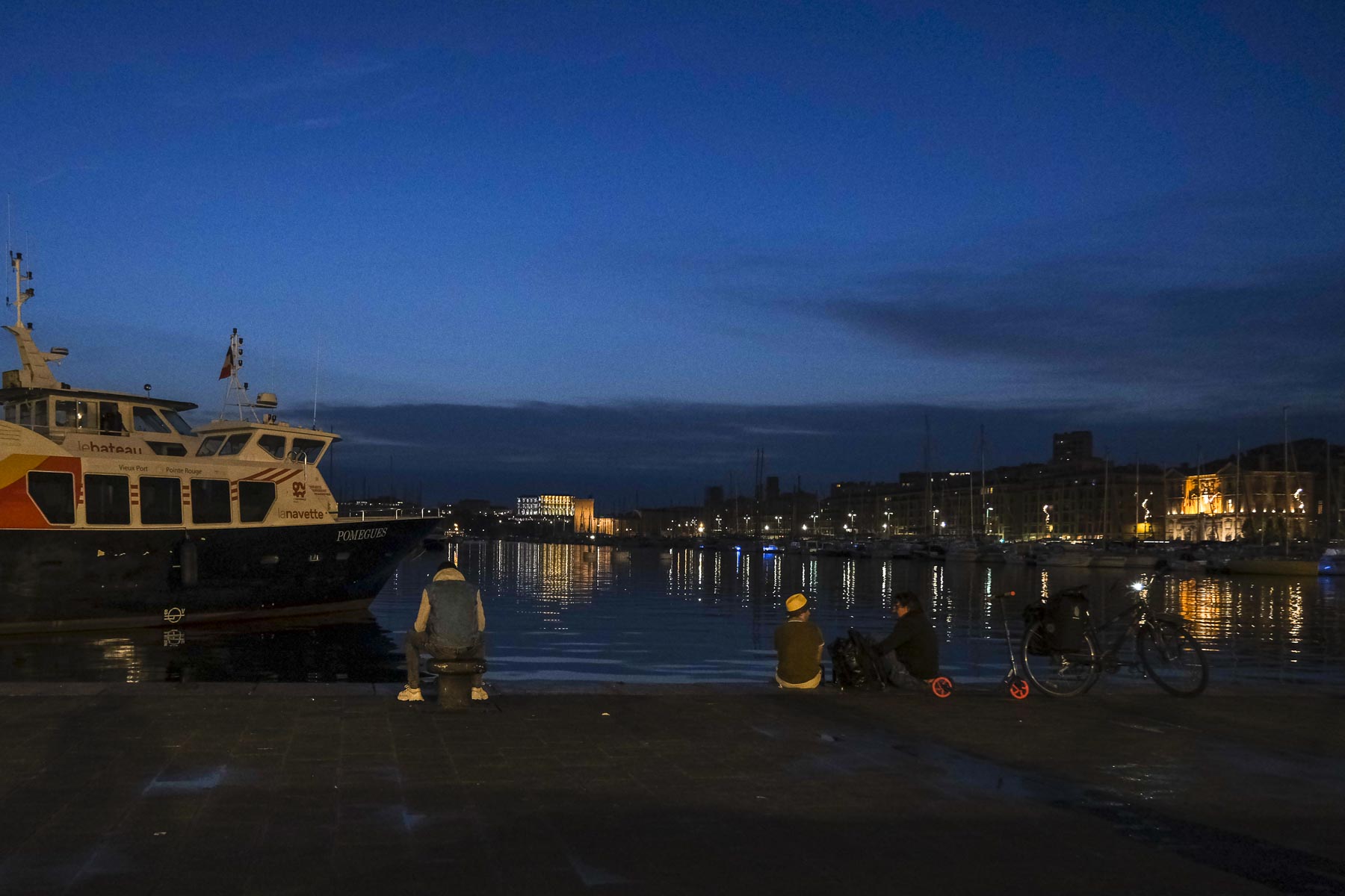 Un mercredi soir de février frisquet. Il est 18 h 30, la nuit vient juste de tomber. Je fais un tour sur l’esplanade Jean-Paul II qui surplombe le quai devant la Major. C’est pas la foule ! Quelques rares passants pressés et un homme sympathique et son chien qui ont la gentillesse de passer devant moi.
