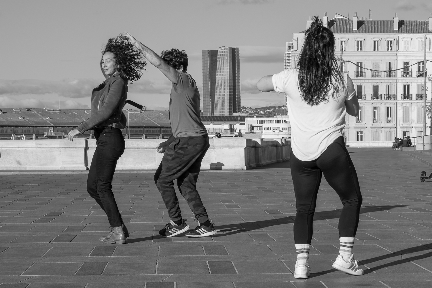 Finie la neige et retour du soleil ! En attendant le début de mon atelier photo du mercredi je fais le tour de la Major. Il est 16 h et des poussières, sur l’esplanade la jeunesse met le son et fait plaisir à voir en ces temps confinés.