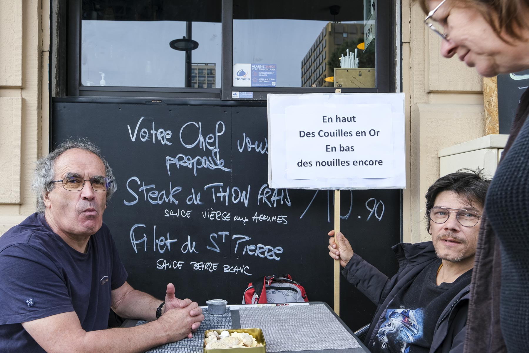 Pause déjeuner après le défilé. Quand je passe devant eux, ils viennent de s’asseoir, je dégaine l’appareil photo. Ils n’ont rien contre.