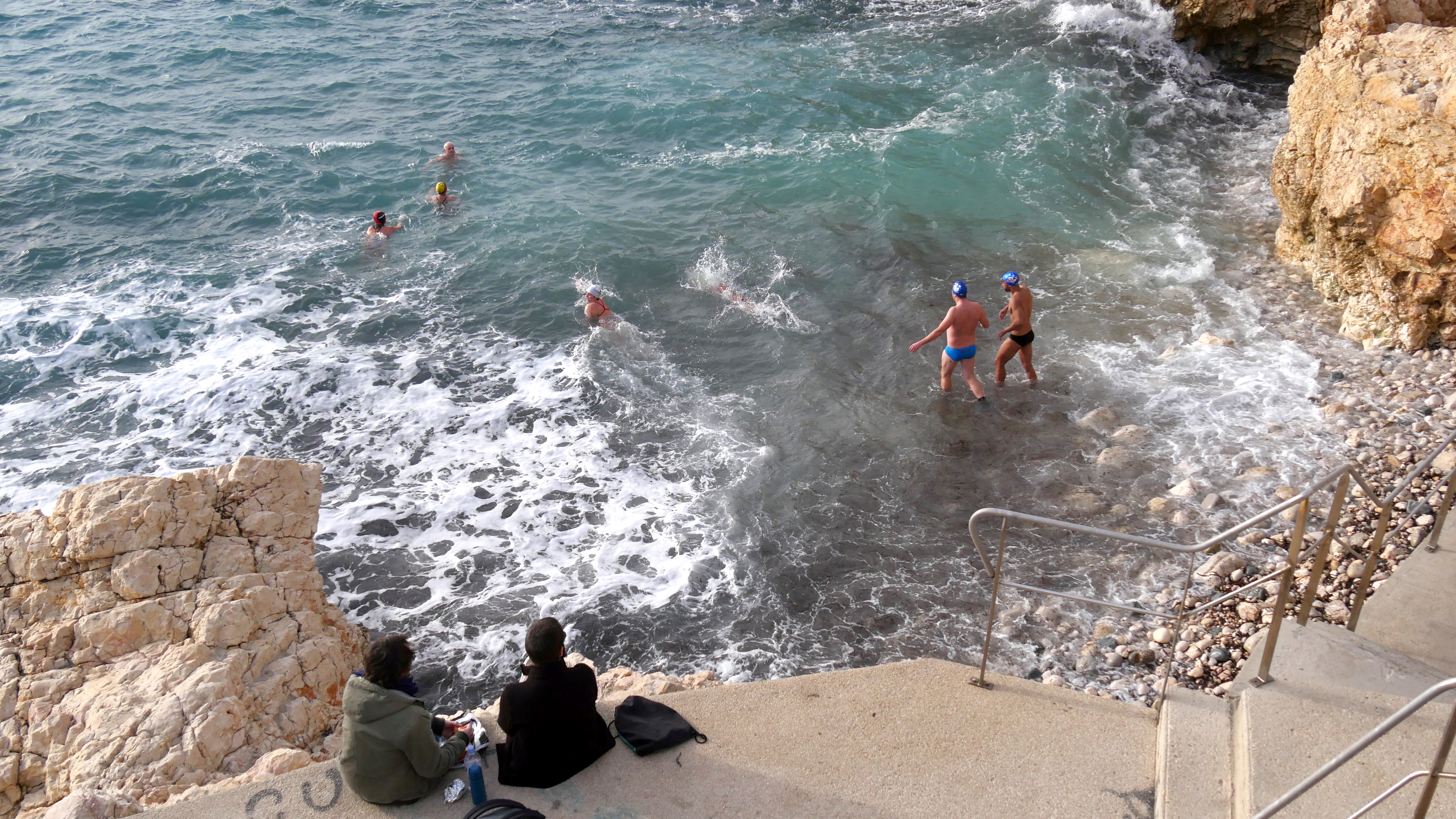 Il fait doux mais pas chaud sous le soleil de ce 1er janvier 2018. Un temps idéal pour une balade avec des amis sur le chemin côtier de Malmousque quand on entend des rires en contrebas. Comme je n’ai ni maillot de bain, ni serviette, j’appuie franchement sur le déclencheur. Quand faut y aller, faut y aller.