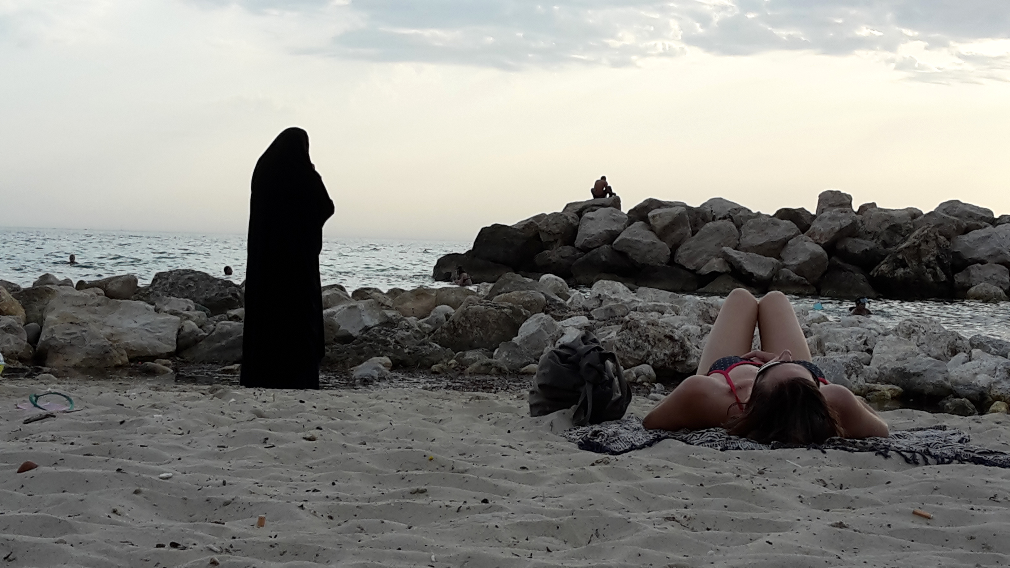 C’est la rentrée photographique un dimanche soir du mois d’août sur la plage du Prophète, à Marseille, terre de contrastes. Photo au téléphone portable.
