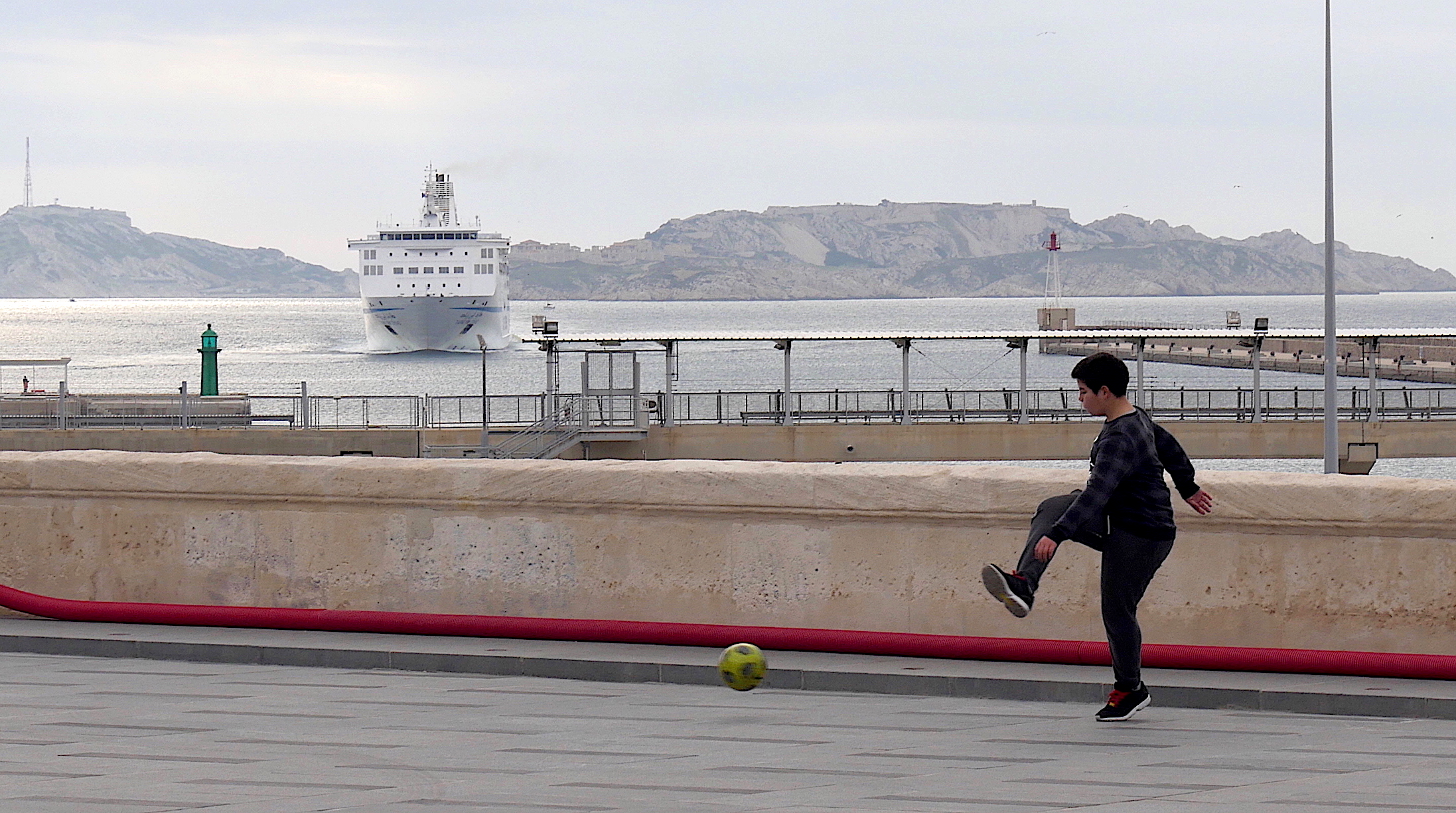 Un parvis de cathédrale où la jeunesse (et pas que) fait du roller, du skate, joue au foot devant un bateau entrant au port comme si c’était parfaitement banal. Je ne suis toujours pas habitué et toujours autant impressionné par ce spectacle.