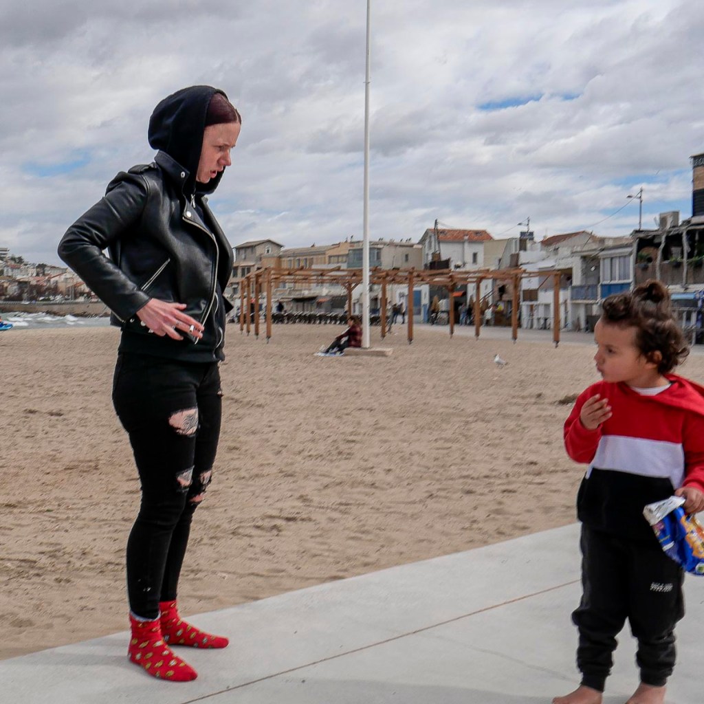 Je les vois de loin. La femme est de dos. Elle fait un pas de côté et se tourne vers l’enfant pile au moment où je passe. Clic ! Ça chauffe pour la gosse qui ne semble pas très perturbée par les remontrances de sa mère.