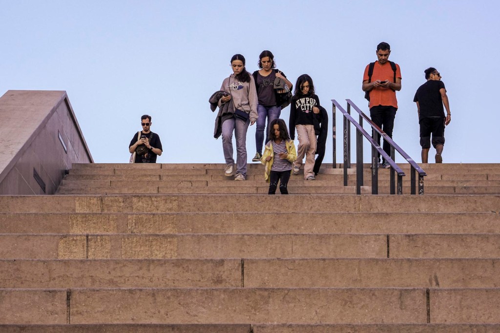 Quand je me retourne au milieu des escaliers, j’ai l’impression de me trouver dans un western-spaghetti face à une bande qui descend de front, un peu comme les cavaliers aux longs cache-poussière qui attendent le joueur d’harmonica à la gare, dans Il était une fois dans l’Ouest. Comme lui, c’est moi qui dégaine en premier.