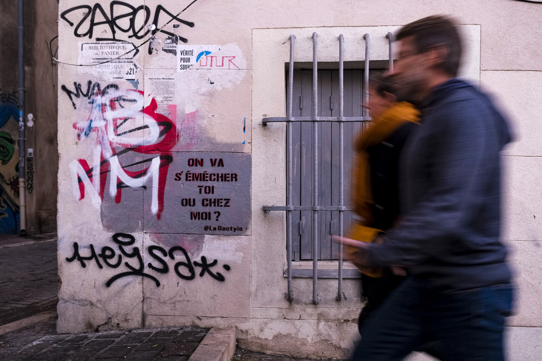 Là, dans le Panier, assis sur des marches, je la relis plusieurs fois en espérant que parmi les enfants qui jouent sur la place quelques uns viendront dans mon cadre sans pour autant lire ces mots. Je n’attends pas très longtemps.