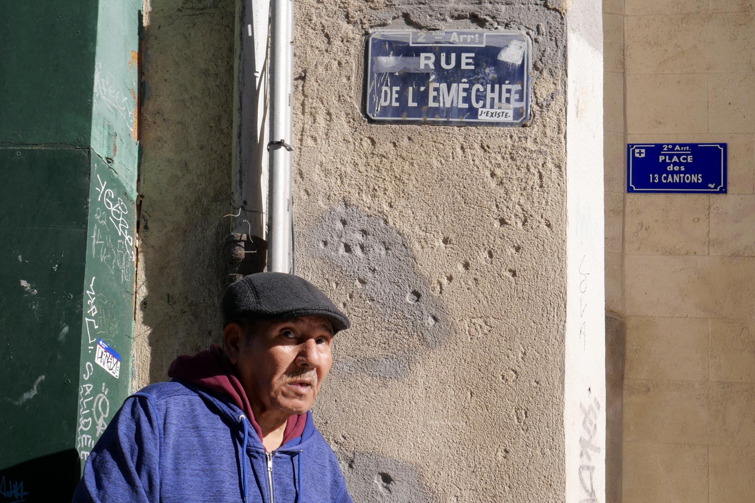 Je discute un moment avec ce brave monsieur qui entre dans le champ au moment où je fais la photo : il n’est pas du tout dans l’état mentionné au-dessus de sa tête.