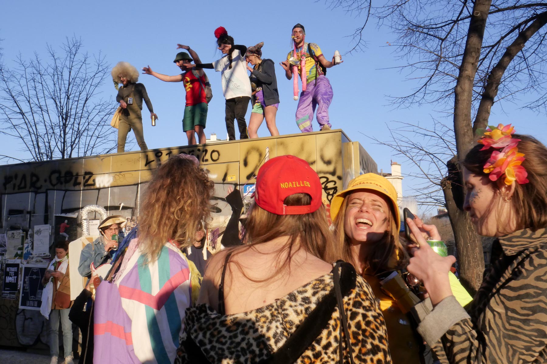 Dimanche 19 mars, carnaval de la Plaine sur la place Jean-Jaurès. Certains fêtent le carnaval, d’autres boivent à la santé de Saint-Patrick. Ambiance ultra festive, conviviale et paisible. Sauf pour le final, si j’en crois les informations de 23 h.