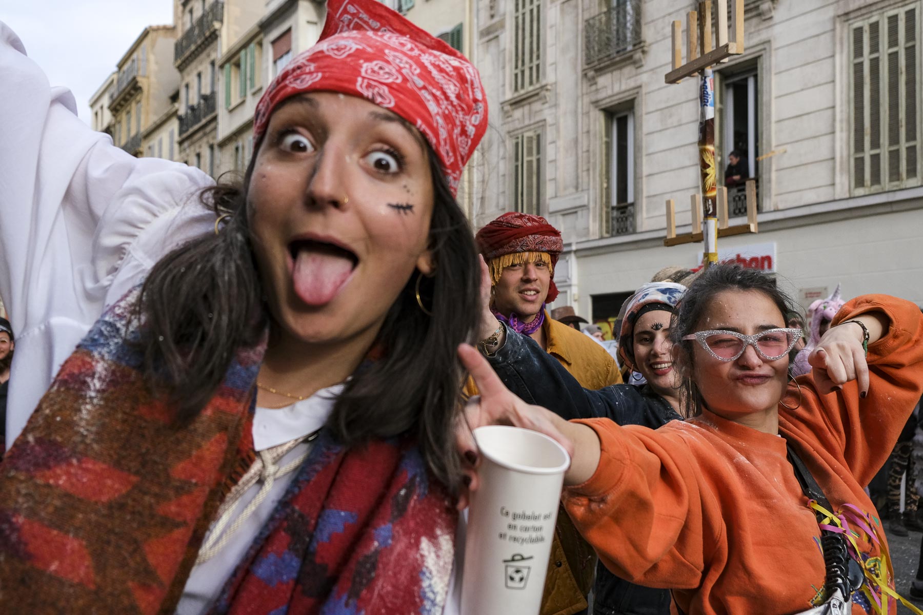 Dimanche 20 mars, Carnaval de la Plaine, Noailles. Malgré le temps incertain, une foule multicolore envahit les rues des du quartier, « théâtre de grandes folies déraisonnables », dit un tract annonçant les festivités. L’ambiance est chaleureuse et bienveillante : inutile de se faire discret, les jeunes, en majorité dans le cortège :-), prennent plaisir à poser devant l’appareil photo.