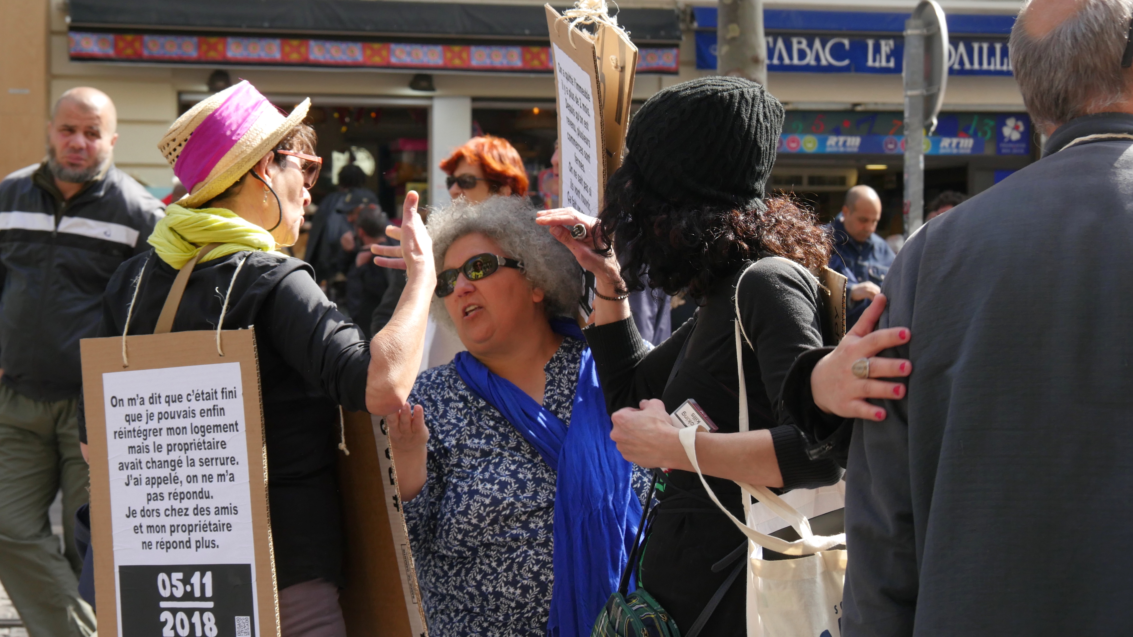 Les « Dimanches de la Canebière », chaque dernier week-end du mois, donnent à la rue un air festif et joyeux. Ici le tragique s’invite : les habitants et voisins de la désormais tristement célèbre rue d’Aubagne, là où trois immeubles se sont effondrés il y a quelques mois, en profitent pour informer la population marseillaise. Dans la bonne humeur malgré tout.