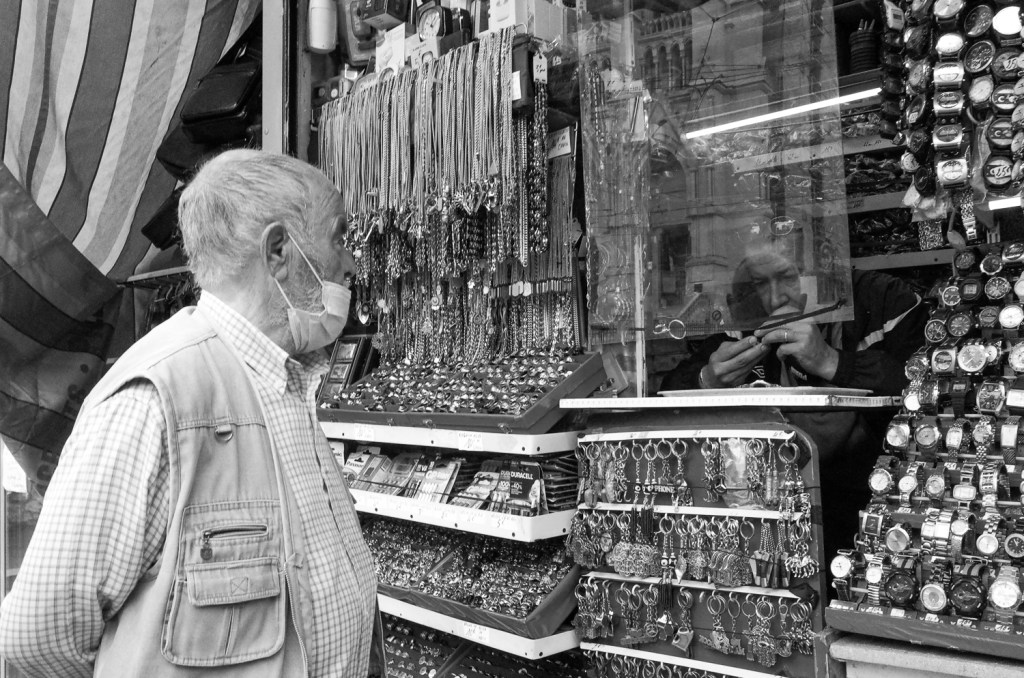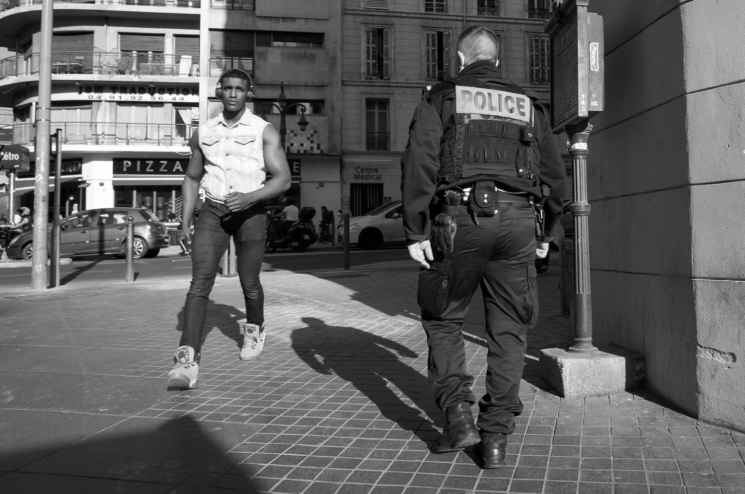 Je remonte la Canebière derrière ce policier quand déboule du boulevard Garibaldi, d’un pas décidé, ce jeune homme, casque sur les oreilles. Le policier qui porte un masque (élastique derrière son oreille) le prie d’un geste de faire de même. L’a-t-il fait ? je suppose, car j’ai continué mon chemin sans me retourner.