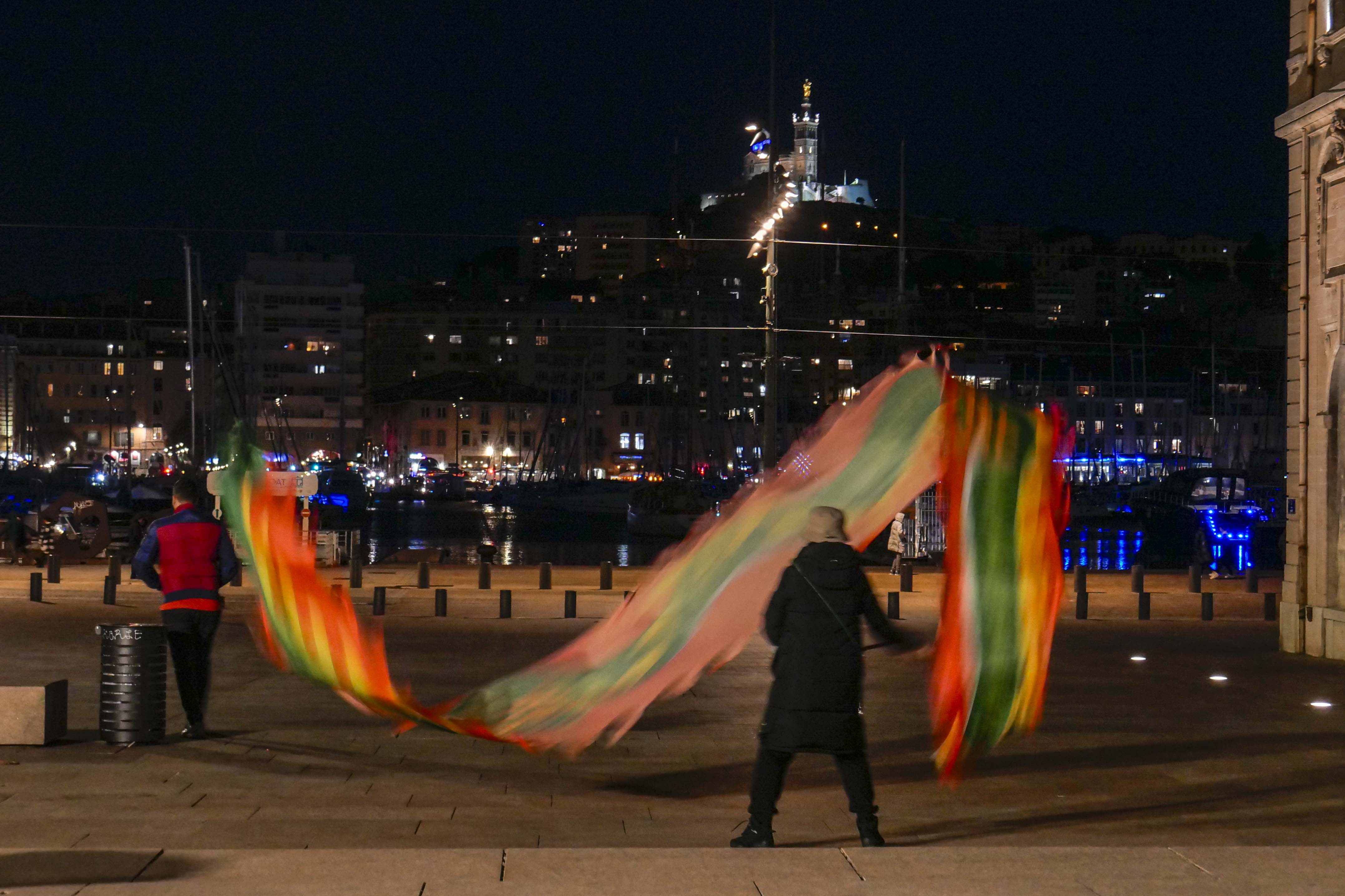 Vendredi 19 janvier, vers 18 h. Quand j’arrive près de cette charmante dame, elle vient de terminer son entraînement. Elle s’exerce pour le Nouvel An chinois qui a eu lieu le 10 février 2024 et qui marque le passage à l’année du Dragon de bois. A ma demande, elle reprend ses spectaculaires mouvements avec son ruban multicolore. Sympa.