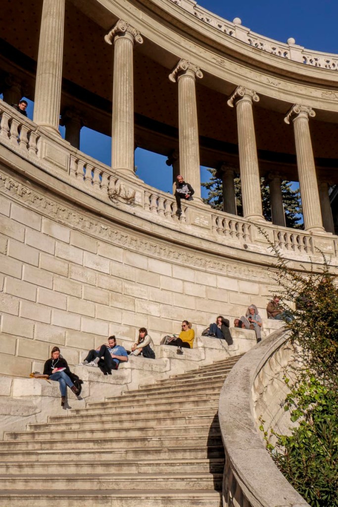 Quand le soleil brille, je vais souvent faire un tour dans le Parc Longchamp (vous l’avez sans doute remarqué !), en particulier dans les escaliers qui amènent au Muséum du côté droit du Palais Longchamp et au Musée des Beaux-Arts du côté gauche. J’aime bien quand une jolie composition se fabrique sous mes yeux.
