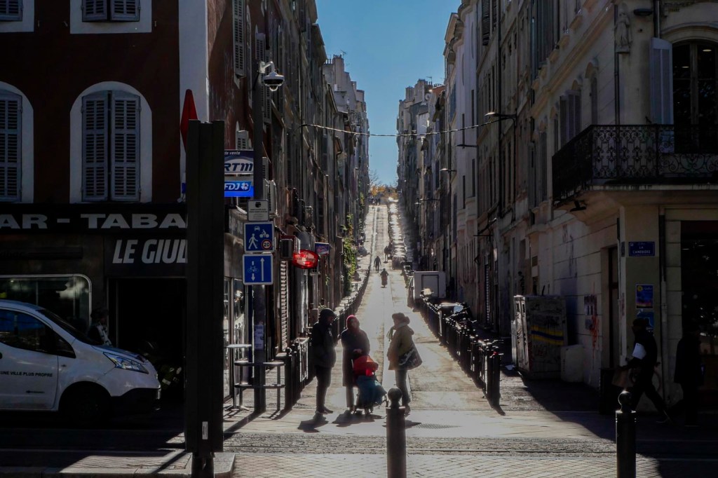 Un matin ensoleillé, je me rends chez Maupetit, mon libraire favori. Scooter garé le long des rails du tram, juste en face de la rue Curiol qui monte vers la place Jean Jaurès, je fais cette dernière photo avant de traverser la Canebière.