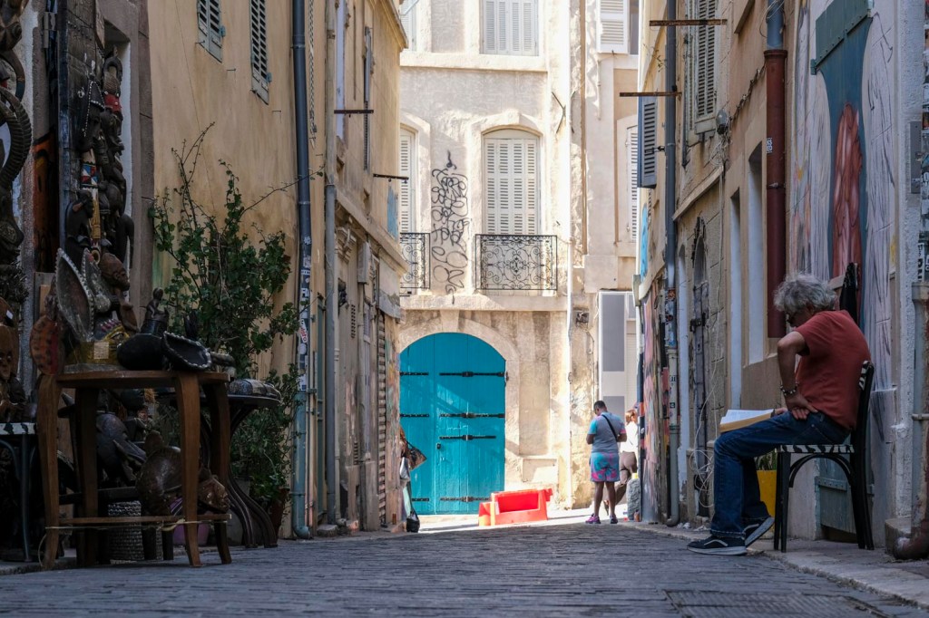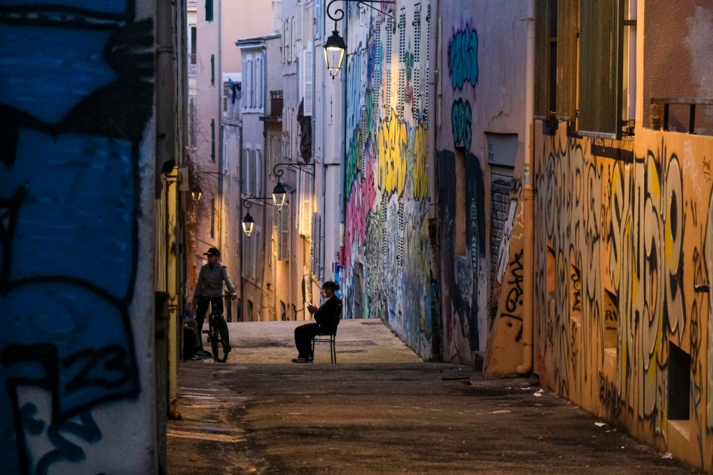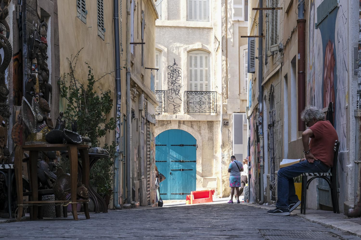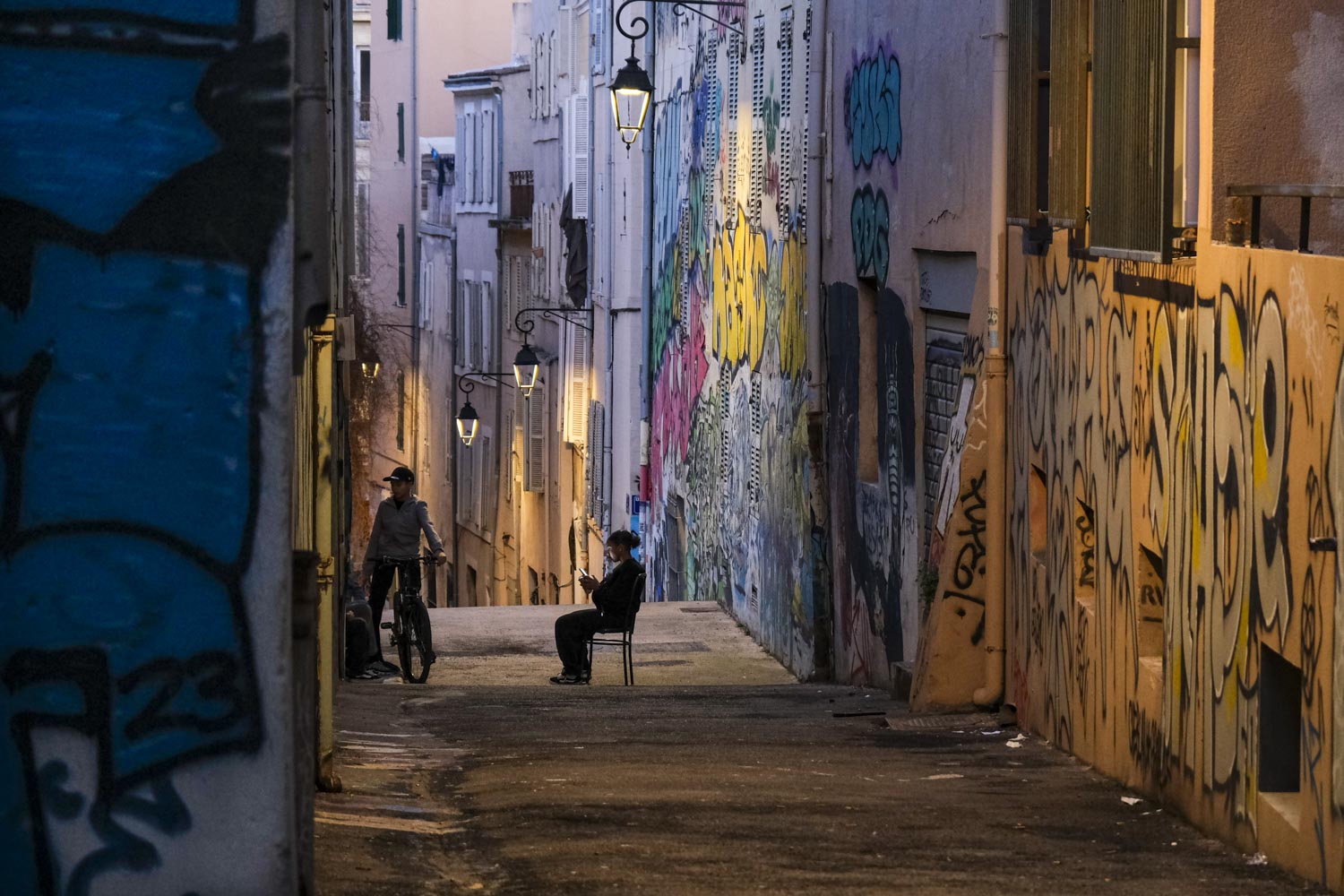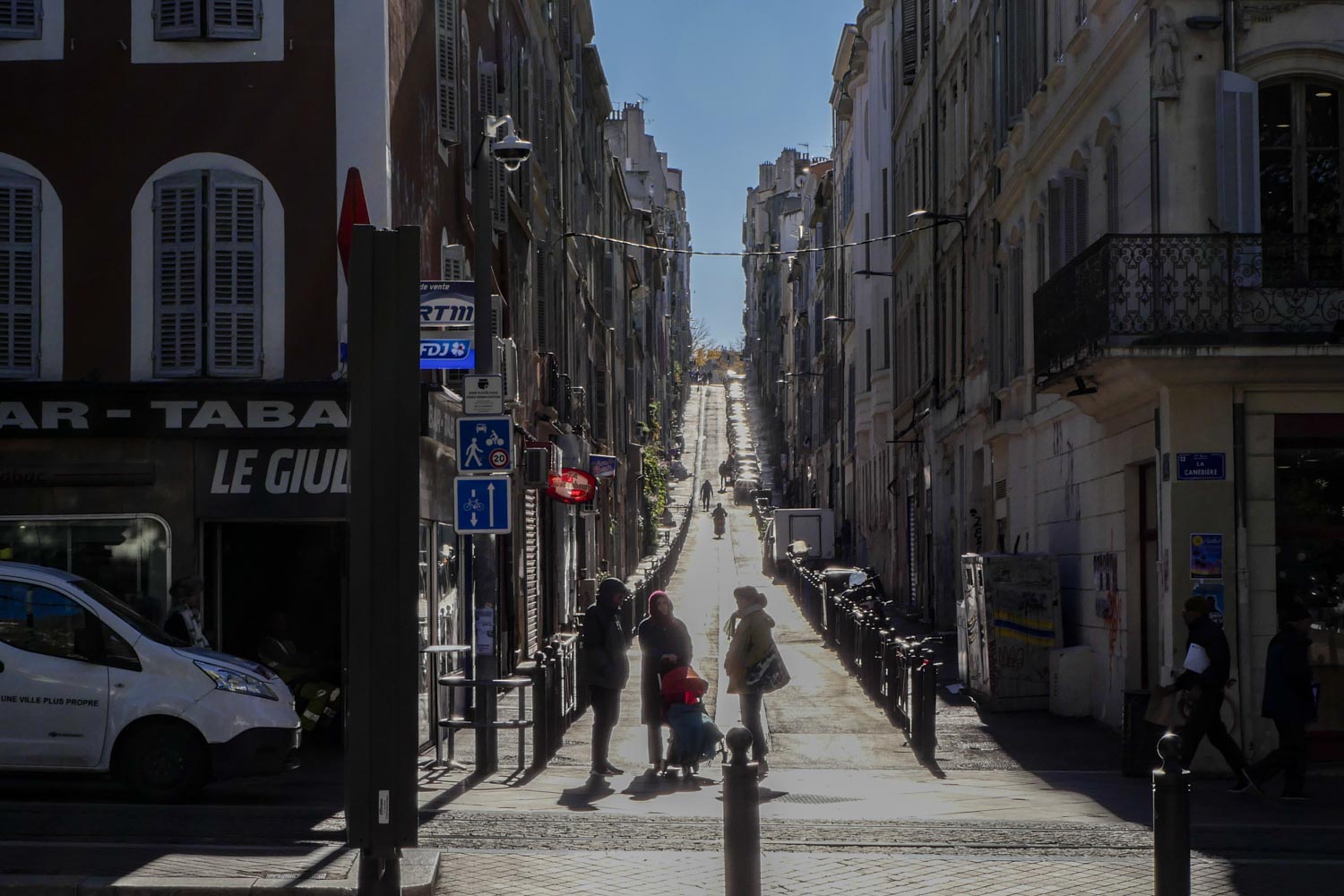 Un matin ensoleillé, je me rends chez Maupetit, mon libraire favori. Scooter garé le long des rails du tram, juste en face de la rue Curiol qui monte vers la place Jean Jaurès, je fais cette dernière photo avant de traverser la Canebière.