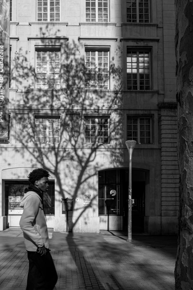 Quand je fais des courses dans le quartier, je passe souvent sous le pont métallique du train. Ce jour-là, début mars, le soleil brille très fort ! J’attends un piéton qui entre dans l’ombre.
