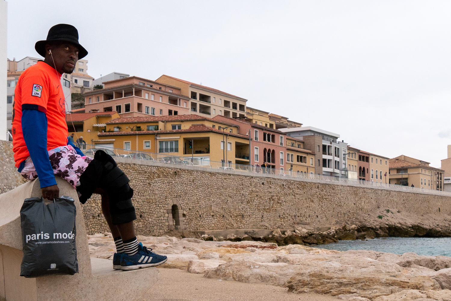 Fin novembre, fin d’après-midi, le vent souffle. J’arrive au-dessus de la plage. Surprise ! je la reconnais à peine, elle est entièrement remodelée par les algues qui envahissent le sable et les rochers alentours. Je me penche au-dessus du parapet pour faire la photo et je rentre fissa me mettre au chaud.