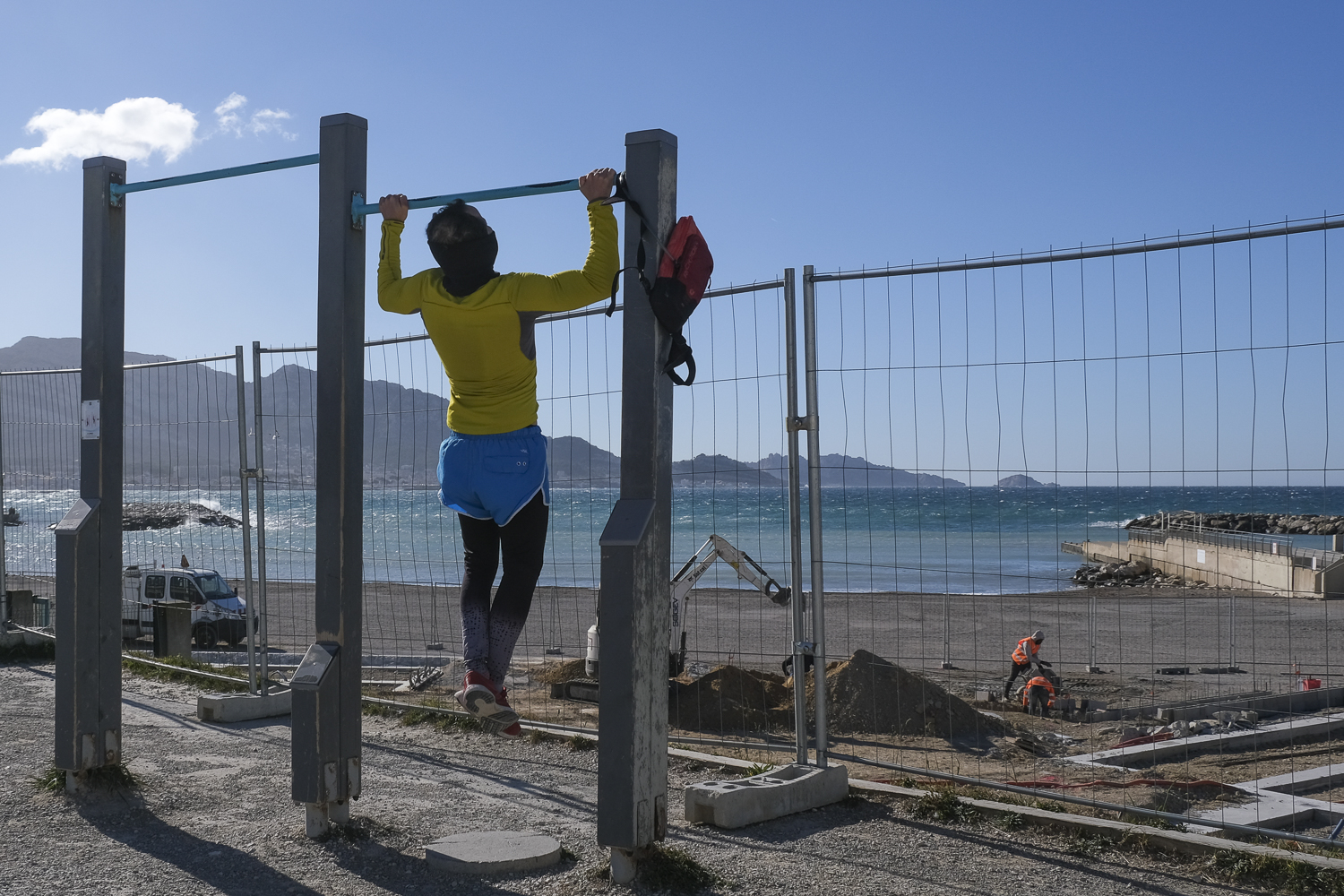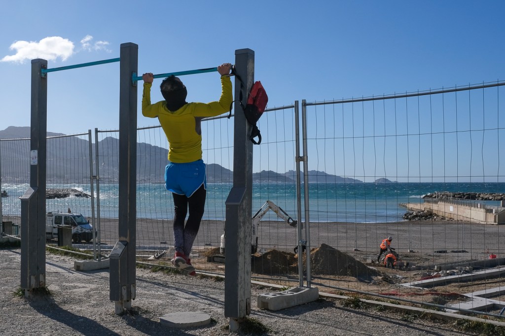 Après-midi de grand vent sur les plages du Prado. Peu de monde à cause du froid : un type sur un skate board tracté par une voile (trop loin), un couple dans les bras l’un de l’autre au bord de l’eau (trop intime), une famille sur la plage qui regarde les gabians (trop nombreux) et une mouette solitaire au-dessus d’un type qui fait un selfie, à l’abri du vent (trop bien).