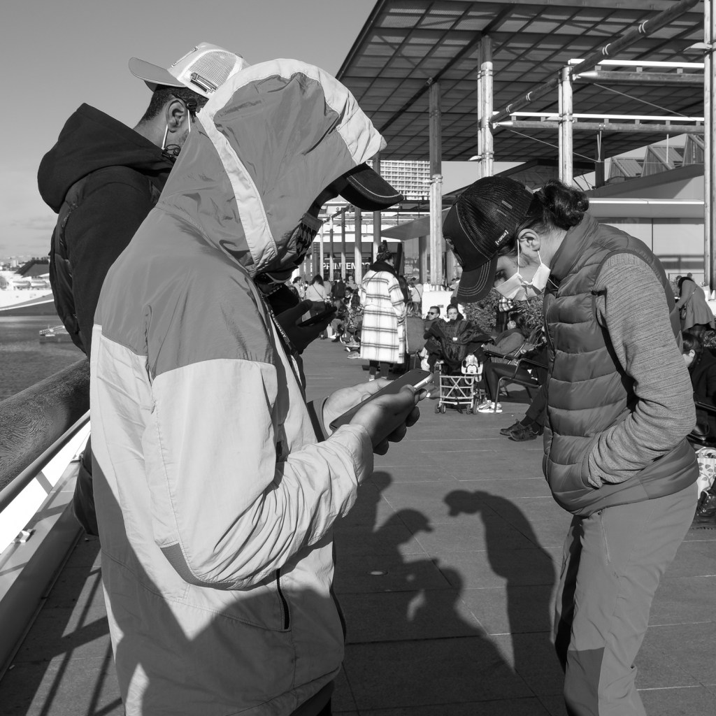 Temps maussade, ciel couvert, lumière grise, il fait froid. Je suis dans le tram à proximité d’une des portes. Quand elle s’ouvre, je me dis que les masques nous gâchent la vue… pardon, la vie.