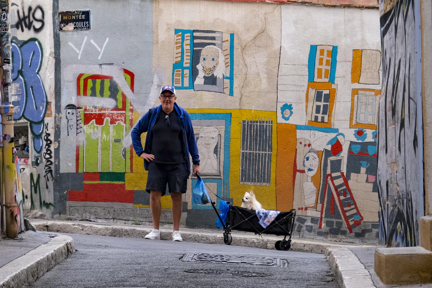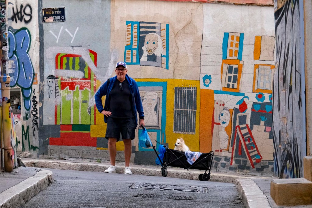 A deux pas de chez moi, je me retrouve derrière cette dame avec son chargement. Mais que transporte-t-elle ? Je descends la rue derrière elle sans trop m’approcher, il n’y a personne. De retour à la maison, internet me dit que le logo sur le dessus du sac est celui d’une marque de bagage.