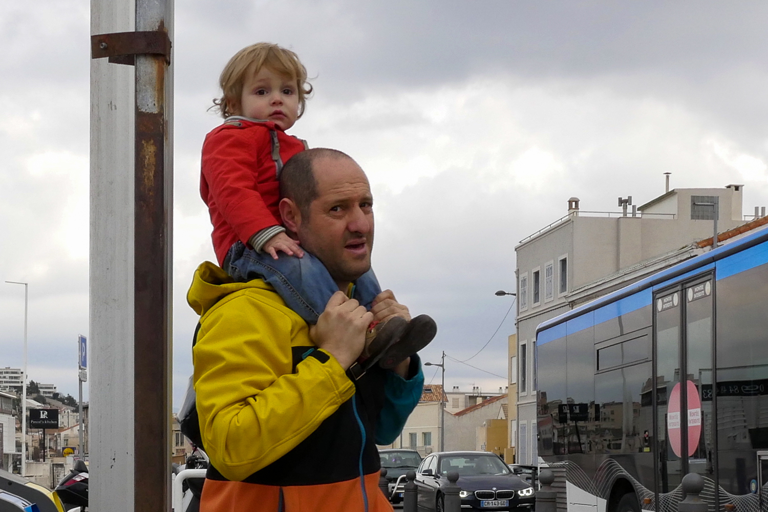 Dimanche après-midi. De retour d’une sortie vélo, tandis que madame achète des épices chez Saladin, je garde un œil sur les VTT, assis au bord du bord du trottoir à proximité de l’arrêt de tram.