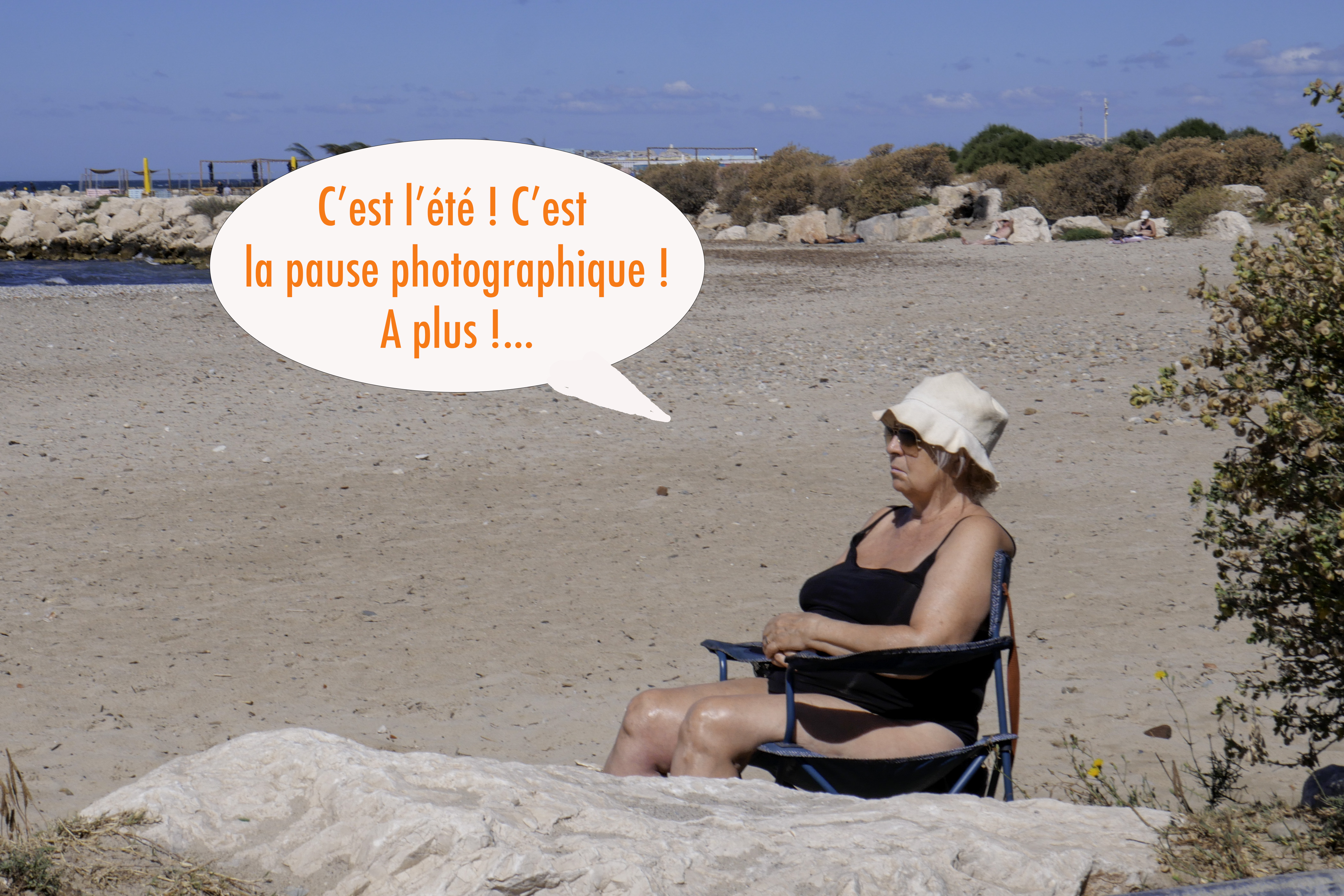 On dirait une plage déserte. En juillet, c’est rare. En fait, les baigneurs et les plagistes sont face à cette petite dame qui s’est isolée. Je vais faire la même chose, mais en Ardèche.