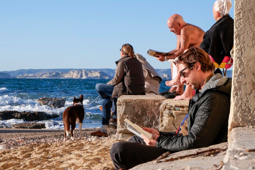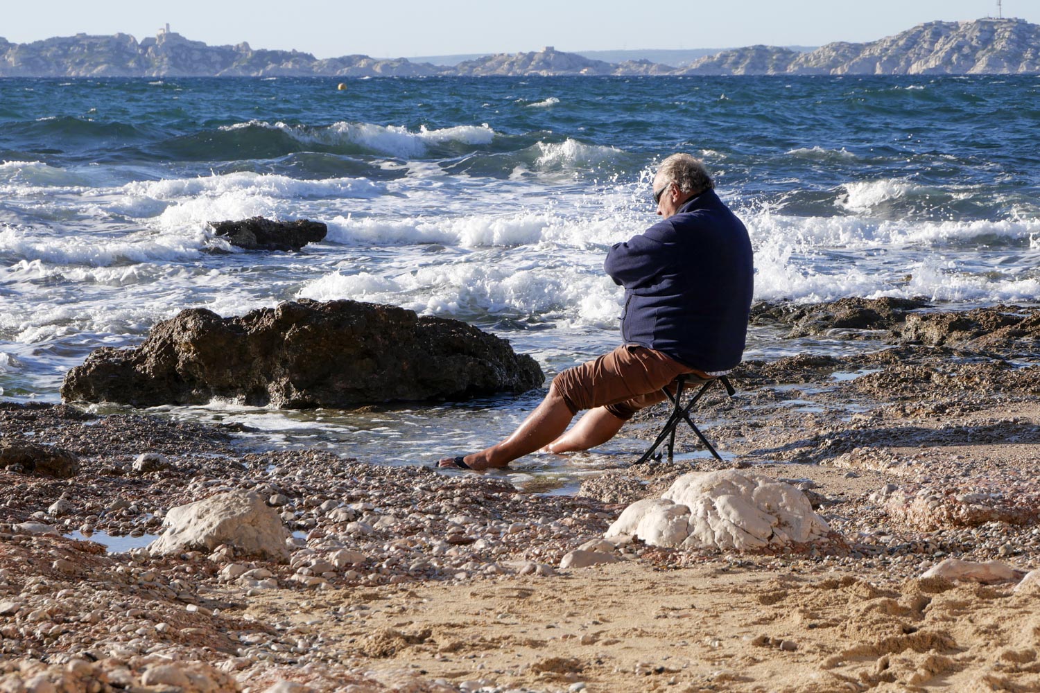 C’est le nom de la plage après celle de la Pointe Rouge. Dernier mardi du mois d’octobre : le soleil brille, le vent souffle, mais à l’abri du blokhaus, on peut bouquiner, tranquille.
