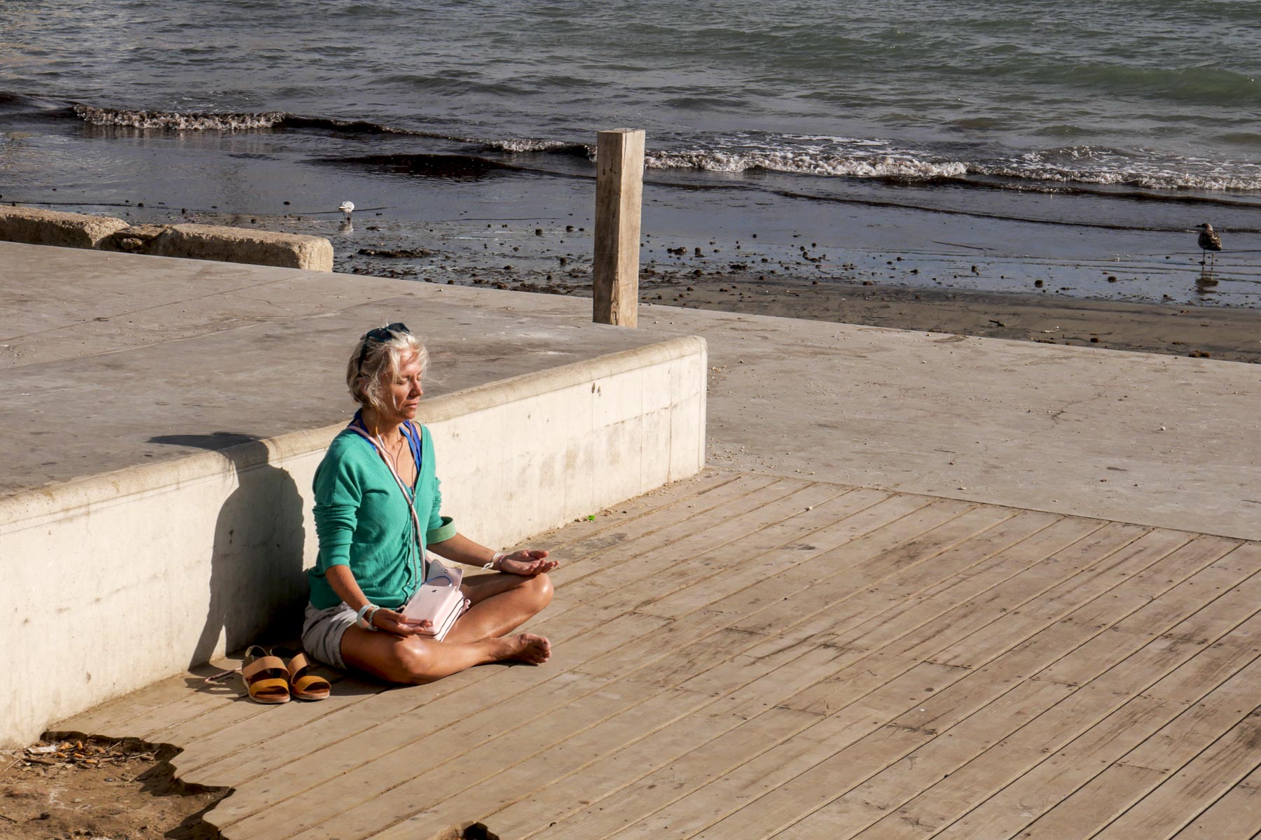 Ce matin, mercredi 26 juillet, 8 heures, je m’interroge : quelle photo pour la dernière image de la saison ? Je fouille un peu dans mon ordi mais je ne trouve aucune vue à mon goût. Tant pis… Peu après je quitte la maison pour accompagner mon petit-fils à son stage de voile. Il est un peu plus de 9 heures quand nous descendons du parking qui surplombe la plage de la Pointe Rouge. Il y a déjà du monde, des groupes de jeunes, des surfeurs, des baigneurs et une yogi qui médite près des douches, les yeux clos, son son sac à main prudemment posé sur ses jambes croisées.