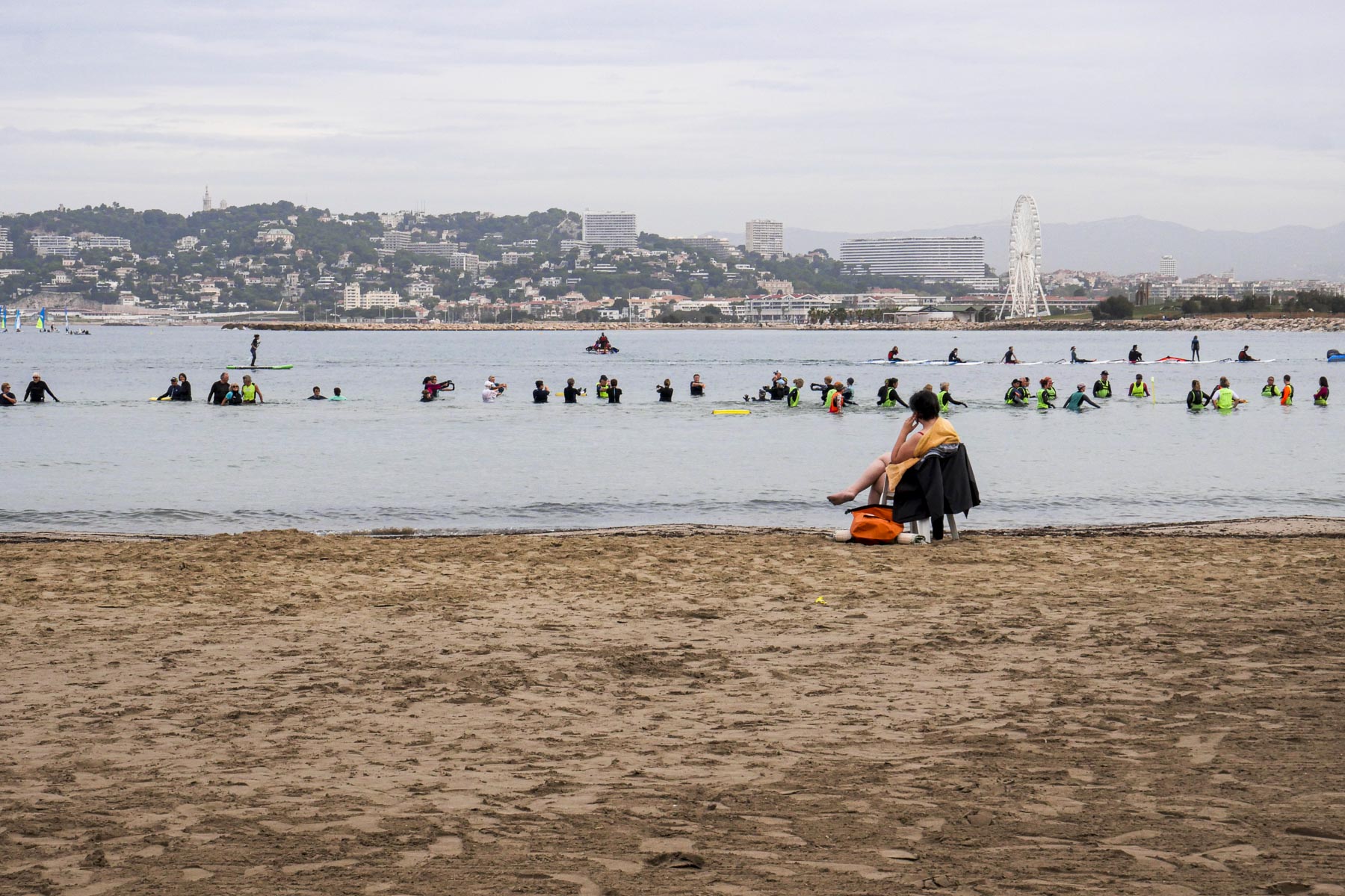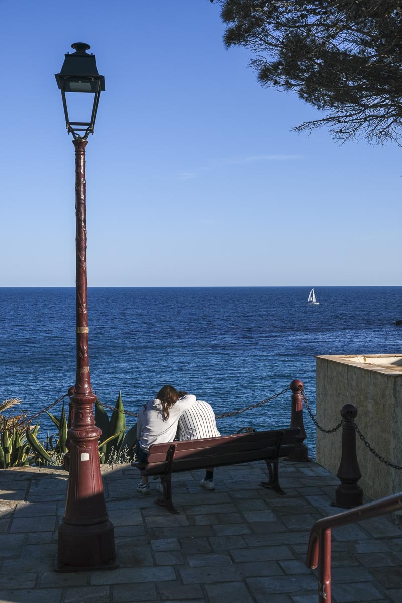 Promenade à pied sur les rochers qui surplombent le Cap Croisette à l’extrémité sud de Marseille, juste en face de l’île Maire. J’ai du mal à cadrer, secoué par le vent violent très propice à se faire renverser sur le sentier caillouteux et parfaitement adapté au courageux véliplanchiste qui file comme une balle dans le passage entre l’île et le cap.